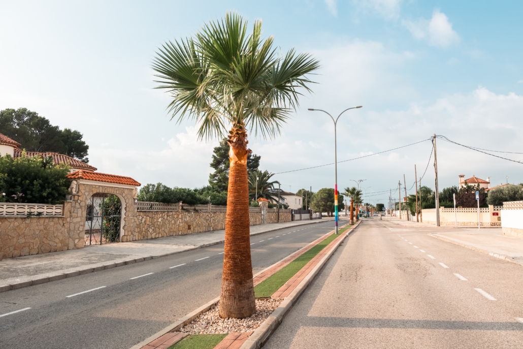 Nostreserveis ha gestionat recentment el pelat dels troncs de les palmeres de la varietat Washingtonia ubicades a l’avinguda Diversitat de Miami Platja. Aquesta actuació, de caràcter estètic, consisteix en la retirada de les branques seques i del teixit exterior del tronc amb una ganiveta esmolada.